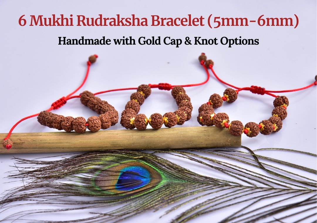 Title: 6 Mukhi Rudraksha Bracelet (5mm-6mm) – Handmade with Gold Cap & Knot Options
